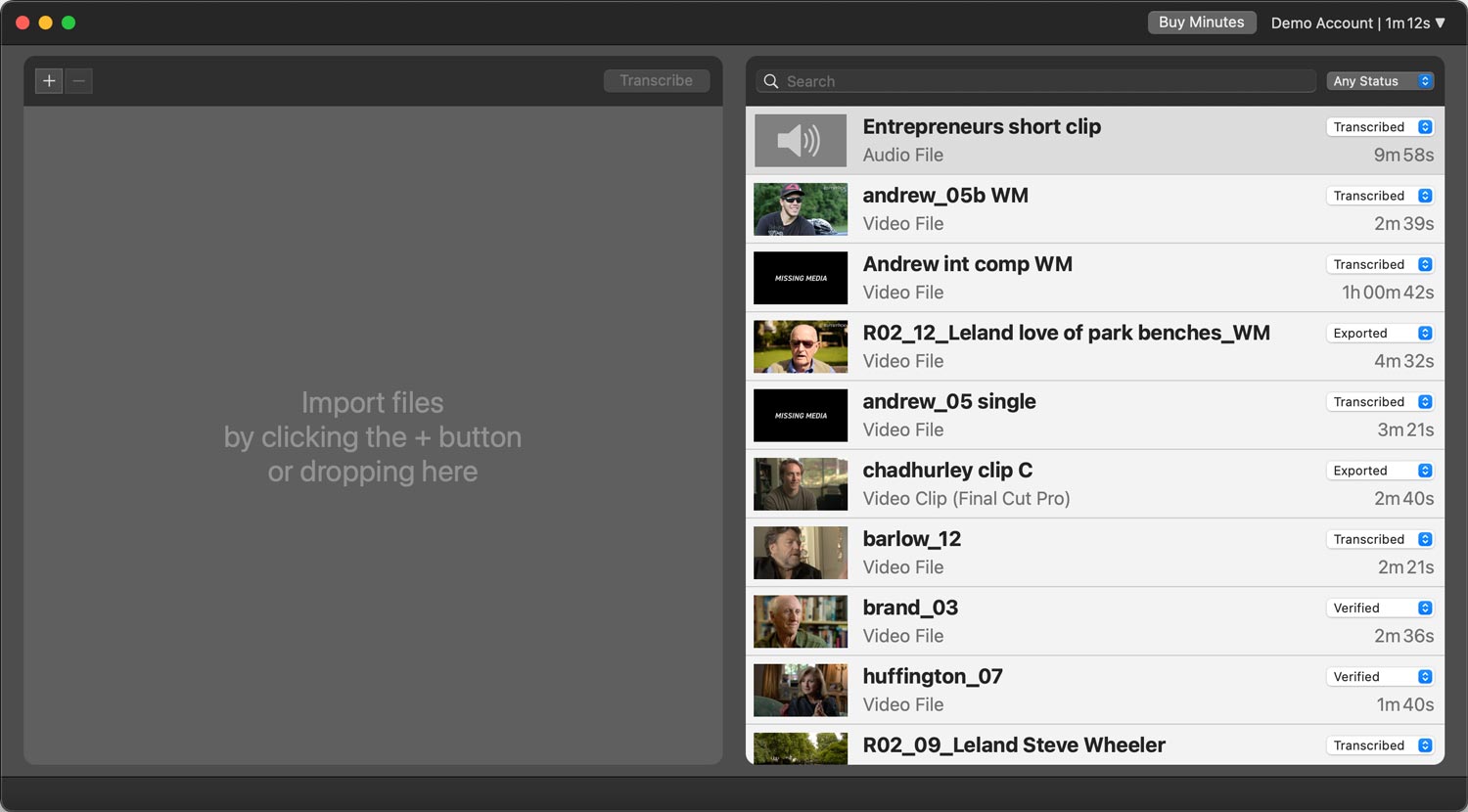 Once the email address on your account has been verified, you will be able to import files for transcribing.