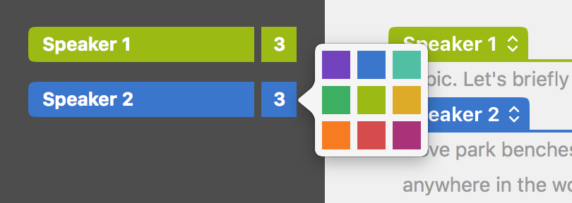 The edited speaker color will automatically update wherever it appears in the transcript.