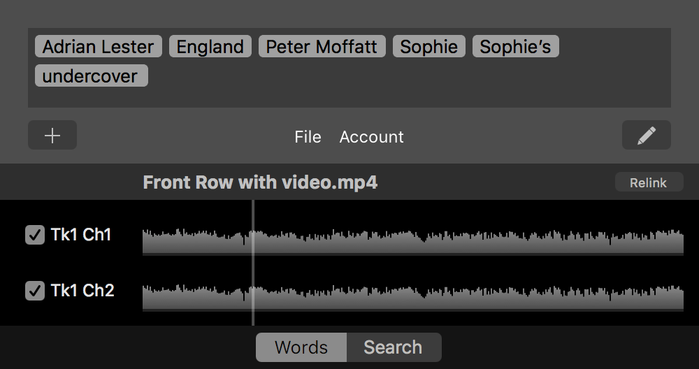 to File — adds the currently selected words in the transcript to File level. - Add